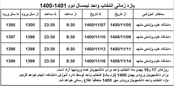 قابل توجه کلیه دانشجویان محترم شروع کلاسها در نیمسال دوم 1401-1400 از 17 بهمن ماه طبق برنامه اعلامی در کانال اطلاع رسانی اداره آموزش در پیام رسان گپ و بصورت حضوری می باشد. همراه داشتن کارت واکسیناسیون جهت دانشجویان ورودی بهمن 1400 جهت شرکت در کلاسها الزامیست. لازم به توضیح است شروع کلاسها جهت دانشجویان کارشناسی ورودی مهر 1400 اول اسفند ماه و تحصیلات تکمیلی ورودی 14 فروردین ماه 1400 سال آینده می باشد.
