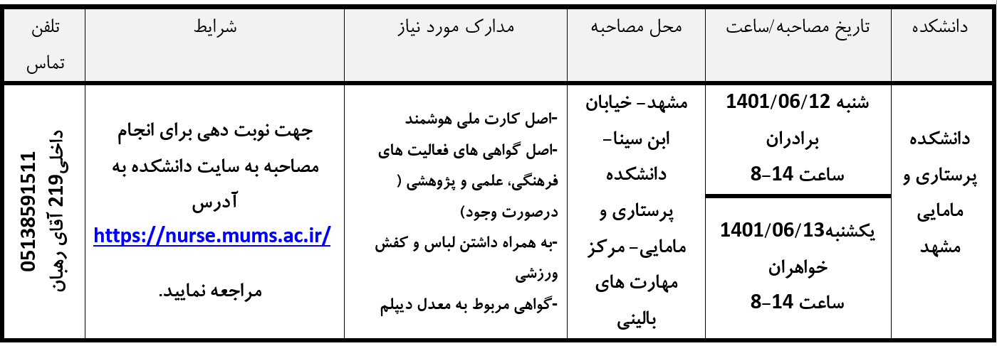 ضمناً از کلیه متقاضیان و داوطلبان محترم تقاضامی شود طبق برنامه اعلام شده به همراه تمامی مدارک خواسته شده شخصا در محل مصاحبه حضور داشته باشند. بدیهی است غیر از زمان یاد شده و به مدارک ناقص هیچگونه ترتیب اثری داده نخواهد شد..