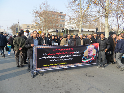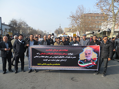 همزمان با مراسم حماسی تشییع پیکر مطهر شهدای مقاومت، شهید سپهبد حاج قاسم سلیمانی و ابو مهدی المهندس و دیگر شهدای مقاومت، رئیس، معاونین، اعضای هیات علمی و کارکنان دانشکده پرستاری ومامایی با حضوری پر شور، همراه با دانشگاهیان و آحاد مردم شریف در این مراسم با شکوه شرکت نمودند. |
