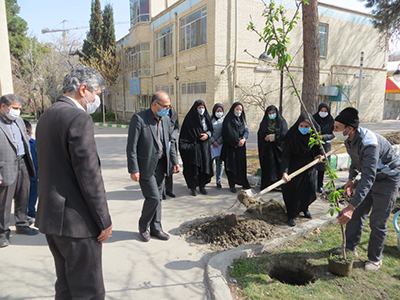 همزمان با هفته درختکاری، مراسم کاشت 10 اصل درخت با نام و یاد سردار شهید حاج قاسم سلیمانی با حضور دکتر فاطمه حاجی آبادی، سرپرست، معاونین، اساتید و کارکنان در محوطه باز دانشکده پرستاری و مامایی برگزار شد. سرپرست دانشکده گفت: کاشت درخت در این روز به تاسی از فرمایش و رهنمون های مقام معظم رهبری در خصوص کاشت درخت که یک حرکت کاملا دینی و انقلابی است انجام شد و نیز کاشت درخت باعث توسعه فضای سبز و هوای پاک می شود و این کار حسنه باعث صدقه جاری و جزوه باقیات و صالحات می باشد.